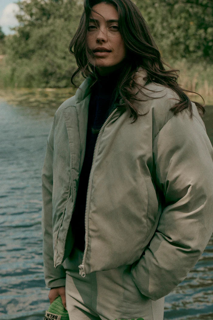Puffige Bomberjacke mit Kragen, Seitentaschen und Reißverschluss