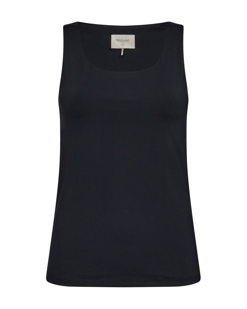 Top von Free/Quent aus weichem Material. Das Top hat eine schlichte Silhouette mit breiten Schulterträgern, einen abgerundeten Ausschnitt, bequeme Säume und eine schöne, enge Passform.